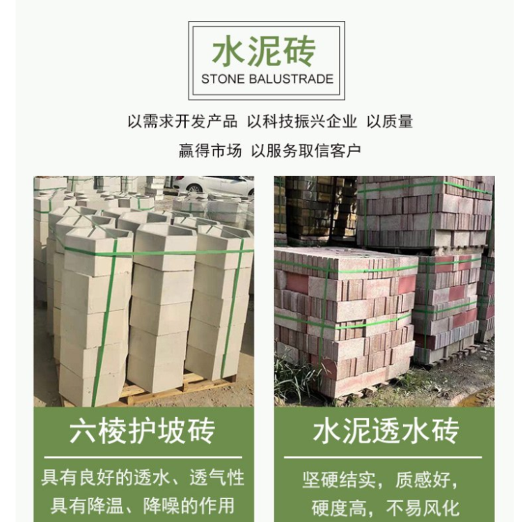 1. 曲阜市興圣建材有限公司主要生產(chǎn):各種路面透水磚,護坡磚,路沿石,仿木護欄,仿木亭子,水泥彩瓦,脊瓦, 水表箱,閥門箱各種井蓋,水泥蓋板,雨水篦子 等產(chǎn)品專業(yè)生產(chǎn)加工的公司。