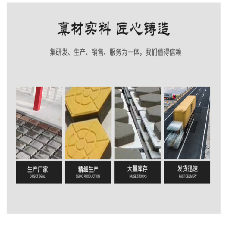 多功能。與整體澆灌的剛性混凝土路面相比,它采用小塊鋪設(shè),塊之間用細砂填充,因此具有剛性表面,柔性連接的獨特功能,抗變形性能好,尤其適用于變形大的柔性地基。市政建設(shè)中,由于計劃不周,一會兒埋設(shè)上、下水道;一會兒鋪設(shè)煤氣管線、電纜管道等,如路面是混凝土整體澆灌,開挖、修補工程量和費用相當(dāng)大,但使用混凝土路面磚,因其是小塊鋪設(shè),中間用細砂填縫,極易拆除。管道鋪設(shè)后,原來的磚仍可繼續(xù)使用,這等于給馬路安裝上一條拉鏈。由于混凝土路面磚是工廠預(yù)制、現(xiàn)場鋪設(shè),施工、維修、修補方便,鋪設(shè)后立即可以投入使用。而整體澆灌的混凝土路面修補后一定要養(yǎng)護一定天數(shù),強度達到規(guī)定要求時才能啟用。